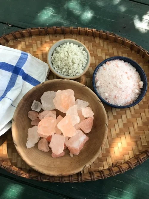 Take a 500 ml mason jar type container. Fill it to a third with Himalayan salt (in chunks) or celtic sea salt. Add filtered water to the top.